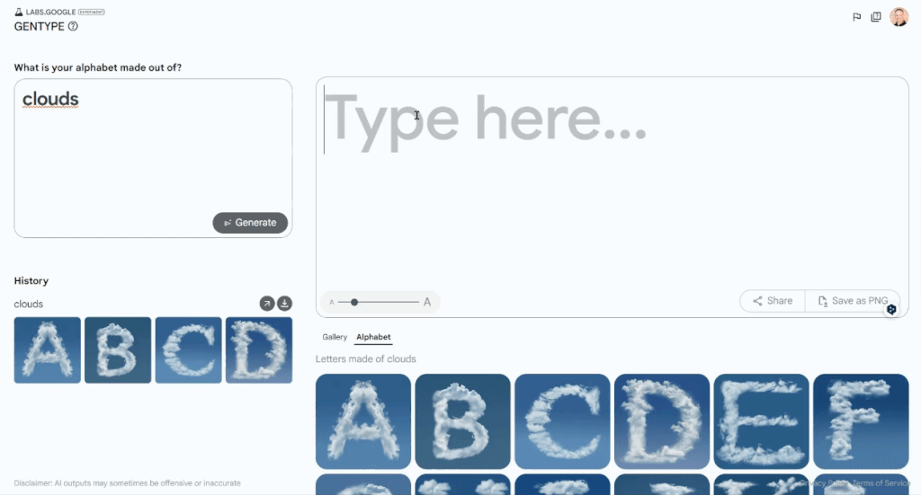 „Gentype“ in interessantes Typo-Experiment mit KI. Warum nicht? Die aktuellen Einschränkungen sind offensichtlich, denn es werden keine Kleinbuchstaben oder Satzzeichen geschweige denn Umlaute unterstützt. Aber zum „Rumspielen“ eignet sich diese Website allemal. Und im Auge behalten sollte man das sicherlich!