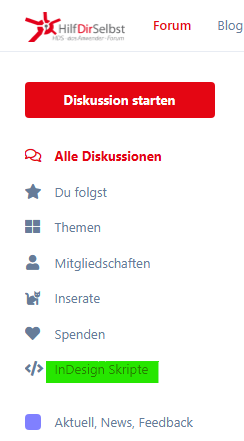 Ein wichtiger Bestandteil des alten HilfDirSelbst.ch hat bisher noch nicht den Sprung in die neue Welt geschafft: Die InDesign-Script-Datenbanken. Ja, es gab mehrere davon – ein wahrer Schatz an Scripten, teils noch für CS3 entwickelt, aber größtenteils bis heute funktionsfähig und nützlich. Doch es gibt gute Nachrichten: Der Admin hat zugesichert, dass es nur eine Frage der Zeit ist, bis sie wieder verfügbar sein werden.
