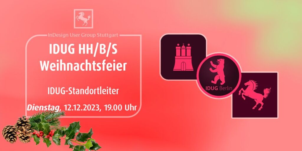 Seit einigen Jahren veranstalten die Standortleiter der deutschen „Publishing Usergroups“ (ehemals „InDesign Usergroups“) eine Weihnachtsfeier. Statt Geschenke und kalorienreichen PlĂ€tzchen gibts Knowhow satt!